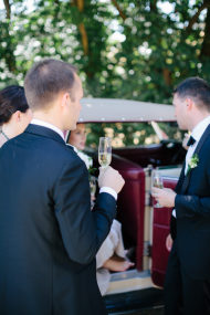 It was important to us for our invitations to be lighthearted and touching. The sweetest person we know, our 8 year old daughter Luna, worded them. We also implemented a whimsical family portrait (including our kitty Musa) illustrated by Dairy Sketches from etsy. I digitized the illustration and gave it a personalized look. I also designed the rest of our stationary pieces carrying the same floral look. Being a career Graphic Designer helped a lot! Everything was going as planned until I broke my ankle one week before the wedding! Needless to say, I was devastated. I didn’t know what hurt the most, my ankle or the fact that I wasn’t going to be able to walk the day of my wedding. I dreaded the idea of using crutches or a wheel chair. But my dear love saved the day. He put wheels on a throne-like chair, so my mom could push me down the aisle, it was genius idea! and it made our wedding so much more special.