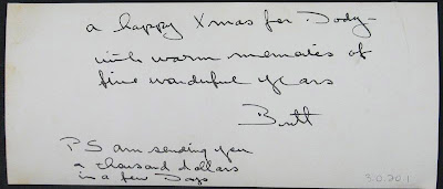The Weston men were legendary womanizers, but there is one auction lot in particular which sheds an endearing light on Brett's character. A Christmas card he sent to Dody showing himself in front of his new ranch house has the handwritten inscription on the reverse "A happy Xmas for Dody - with warm memories of five wonderful years, Brett. PS am sending you a thousand dollars in a few Days."
